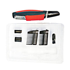 This 2 in 1 Grooming Electric Shaver has a full size blade that will help keep your beard or sideburns trim and neat. This trimmer is a head to toe full body grooming system. You can also use to trim your frontal or back hairline, keeping your head clean and looking good. It will get the job done without causing injuries, or irritating your delicate skin in any way. The switchblade trimmer also has a snap on guide that stabilizes it, and improves control. Portable - cordless , trims hair anywhere. Integrated design, easy to use and to carry. Precision snap-on guides - for superior control. Includes lighted mini & full-size trimmers for head to toe grooming. For everyone - great for all ages, trim or full haircut. Premium quality - rust-free shaver so you don't need to buy frequently.